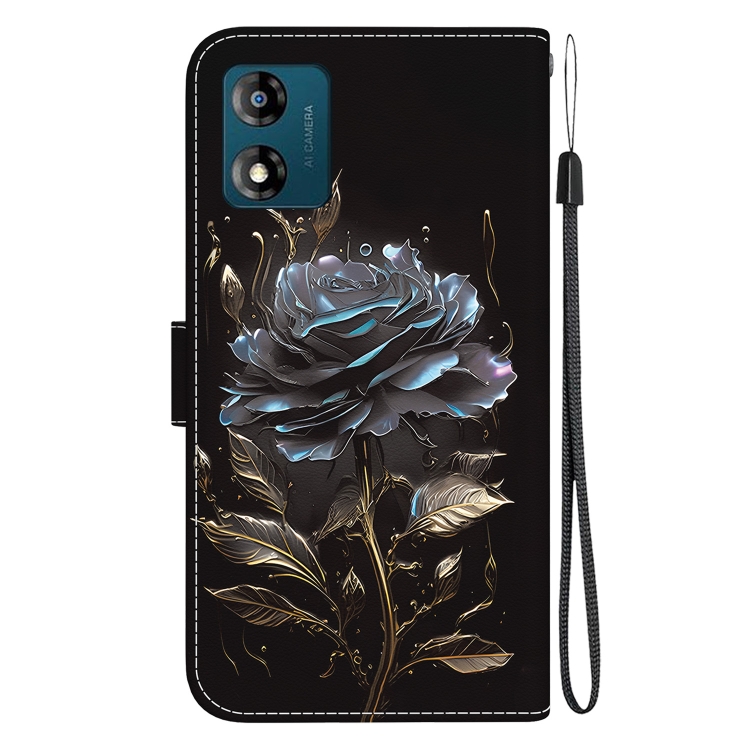 Funda de Cuero para Motorola Moto E13 con Dibujo Coloreado y Textura de Cristal (Rosa Negra)