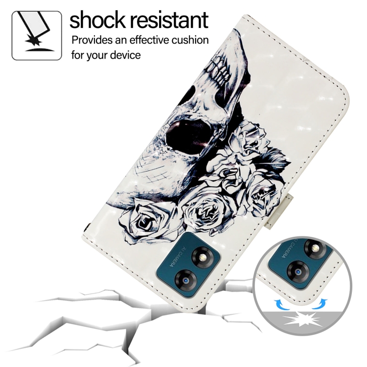 Funda de Cuero para Motorola Moto E13 con Tapa Horizontal y Pintura 3D Calavera