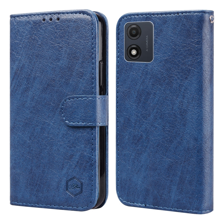 Funda para Motorola Moto E13 con Textura de Cuero Aceitado PU + TPU (Azul Oscuro)