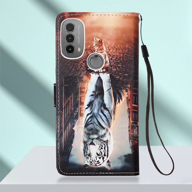 Funda para Motorola Moto E20 E30 E40 Cuero Tejido Liso Dibujo Gato y Tigre (Color)