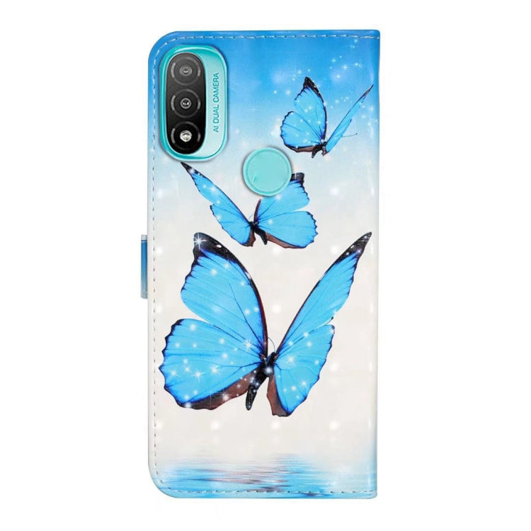 Funda de Cuero para Motorola Moto E20 E30 E40 con Dibujo 3D en Relieve al Óleo (3 Mariposas)