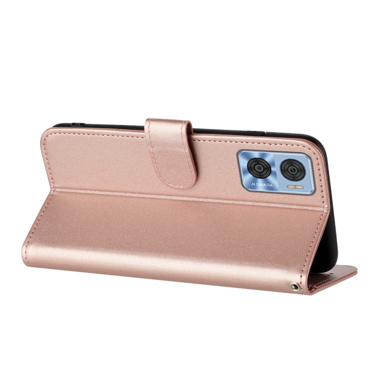 Funda de Cuero para Motorola Moto E22 Datura Flower con Tapa en Relieve (Oro Rosa)