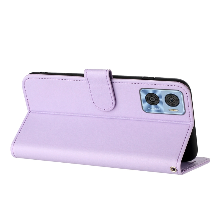 Funda de Cuero para Motorola Moto E22 con Tapa en Relieve Datura Flower (Púrpura)