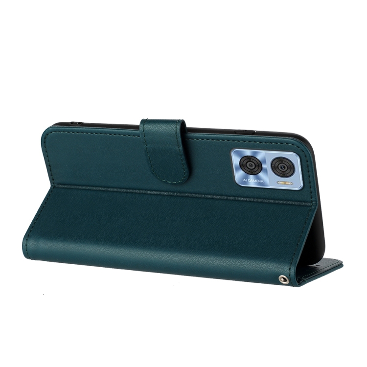 Funda de Cuero para Motorola Moto E22 Datura Flower con Tapa en Relieve (Verde Oscuro)