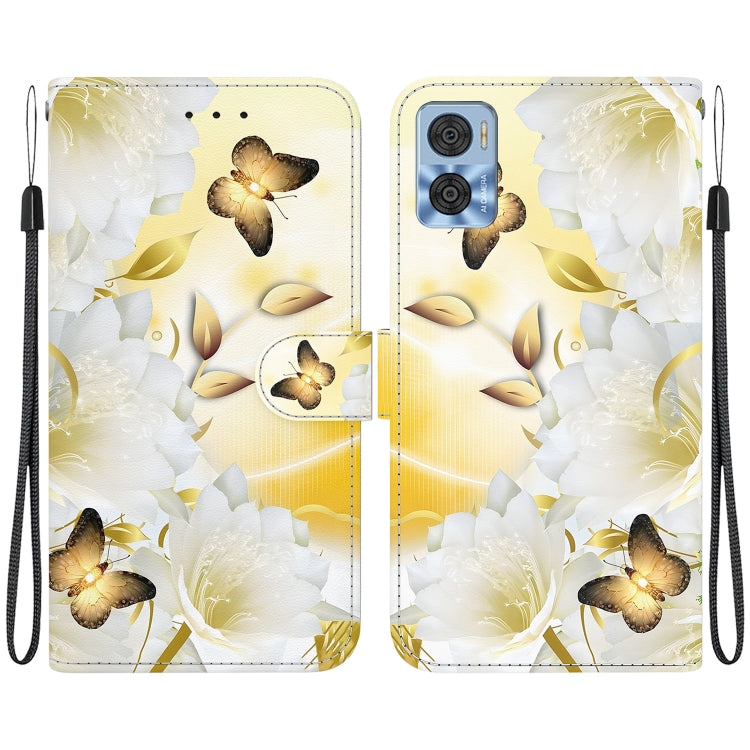 Estuche para Motorola Moto E22 / E22I de Cuero con Dibujo Epiphyllum y Mariposa Dorada (Textura Cristal)