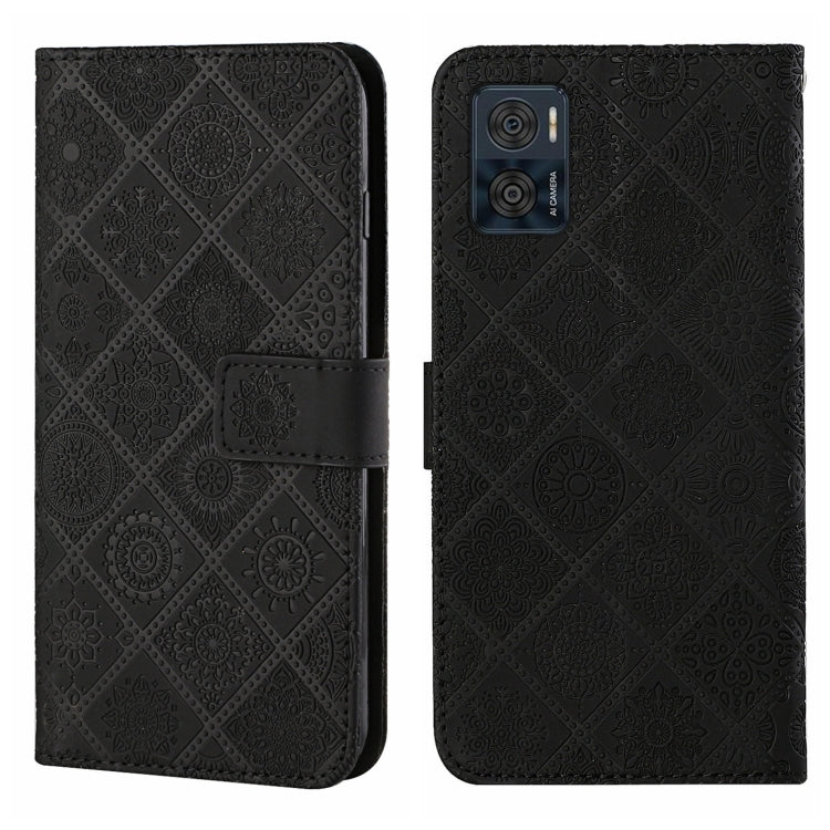 Funda de Cuero para Motorola Moto E22 / E22I con Patrón en Relieve Estilo Étnico (Negro)