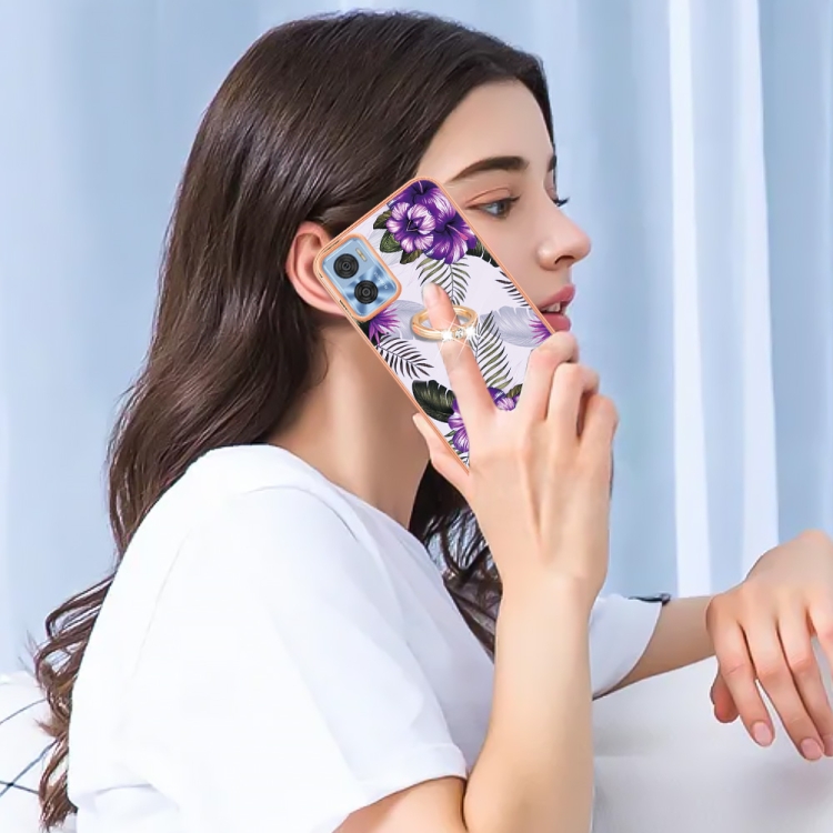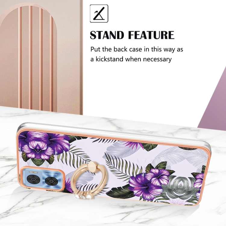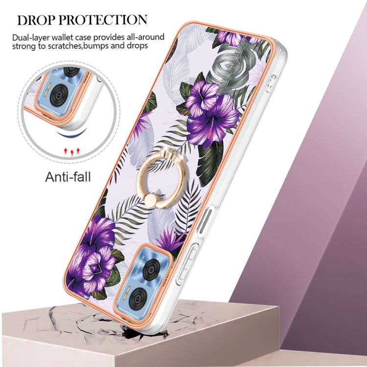 - 1x Funda TPU con Anillo para Motorola Moto E22 / E22I Galvanoplastia IMD (Flor Púrpura)