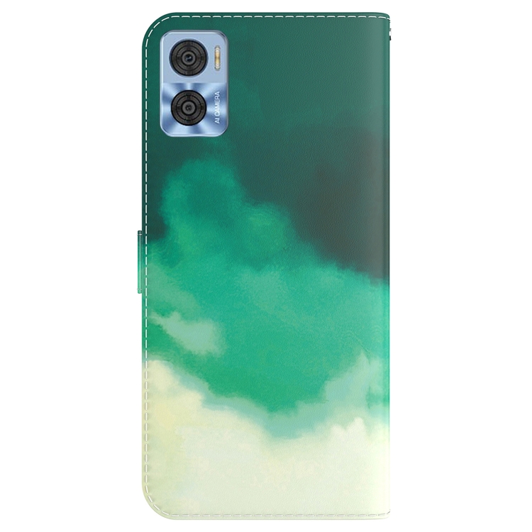 Funda de Cuero Flip para Motorola Moto E22/E22I con Patrón de Acuarela (Verde Cian)
