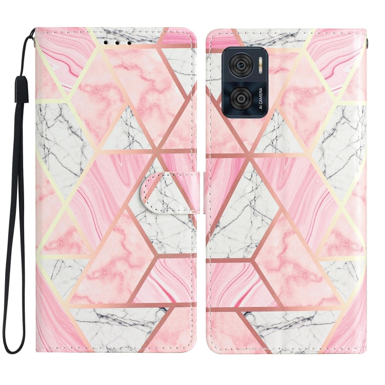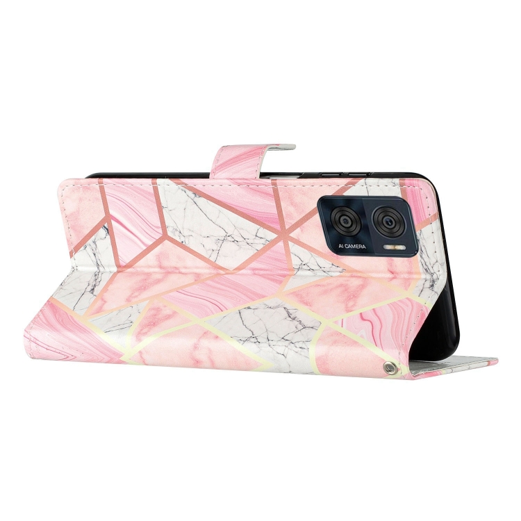 - 1x Estuche para Motorola Moto E22 de cuero con dibujo coloreado Mármol Rosa