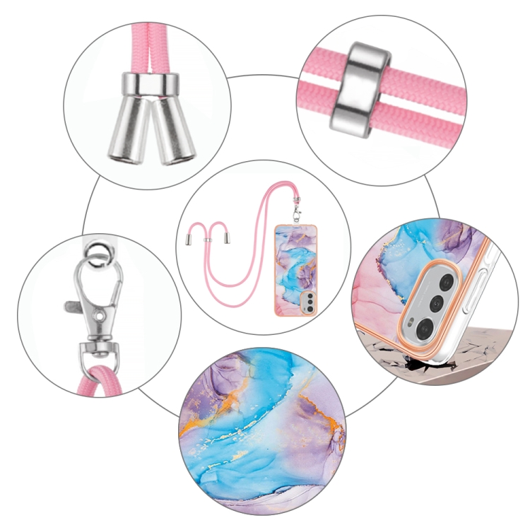 Funda TPU Galvanoplastia Imd con Cordón para Motorola Moto E32 4G / E32S (Mármol Azul)