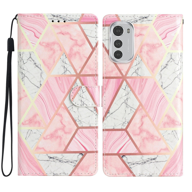 - 1x Estuche para Teléfono Motorola Moto E32 de Cuero con Dibujo Coloreado (Mármol Rosa)