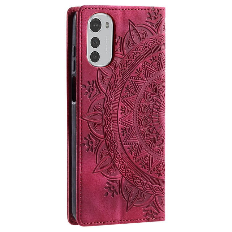 Funda de Cuero Magnética Totem para Motorola Moto E32 en Relieve (Rojo)