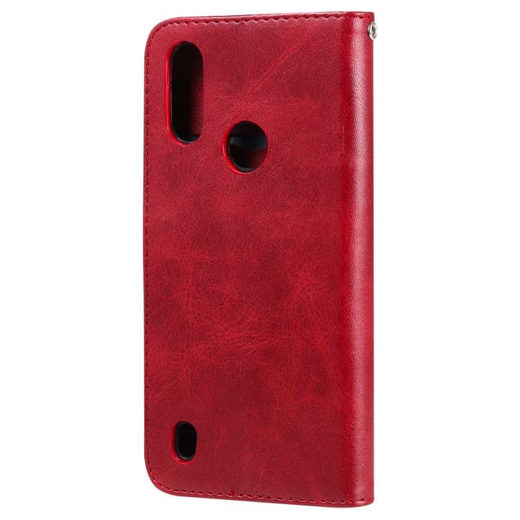 Para Motorola Moto E6s (2020) Estuche de cuero con tapa horizontal con cremallera y textura de becerro con soporte, ranuras para tarjetas y función de billetera (rojo)