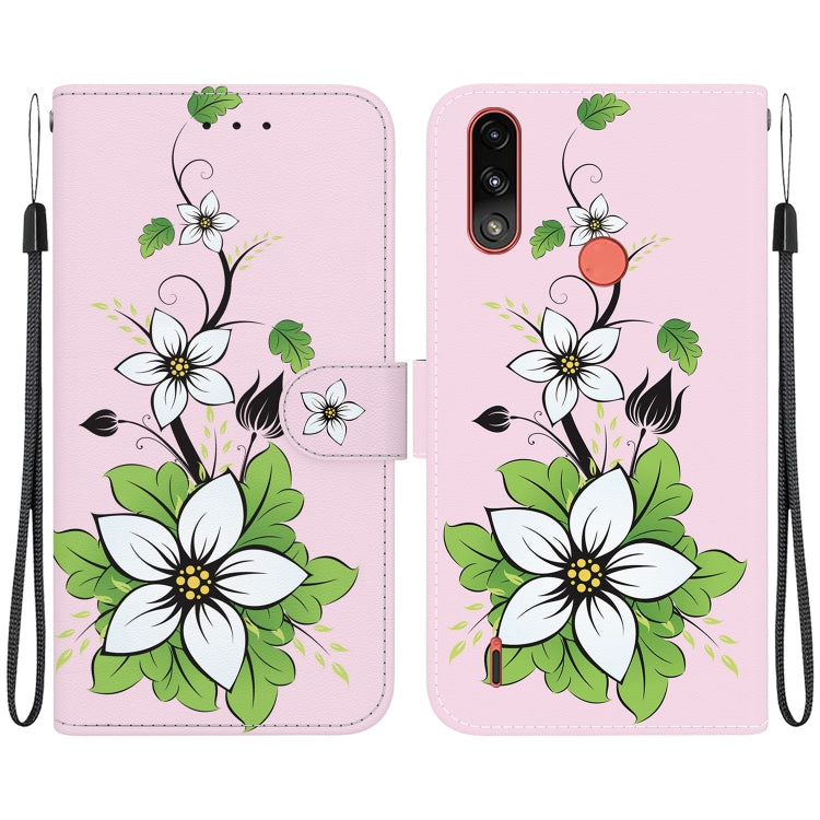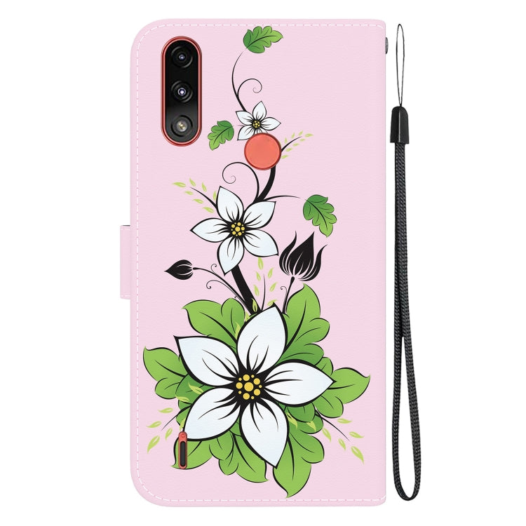 Funda para Motorola Moto E7 Power y E7I Power de Cuero con Dibujo Coloreado y Textura de Cristal (Lirio)