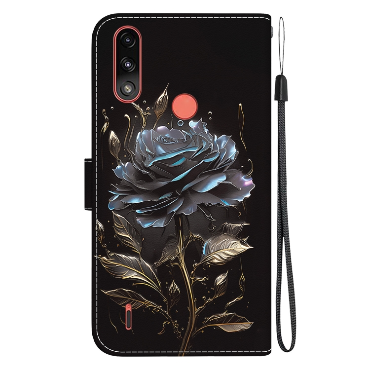 Funda para Motorola Moto E7 Power / E7I Power de Cuero con Dibujo y Textura de Cristal (Rosa Negra)