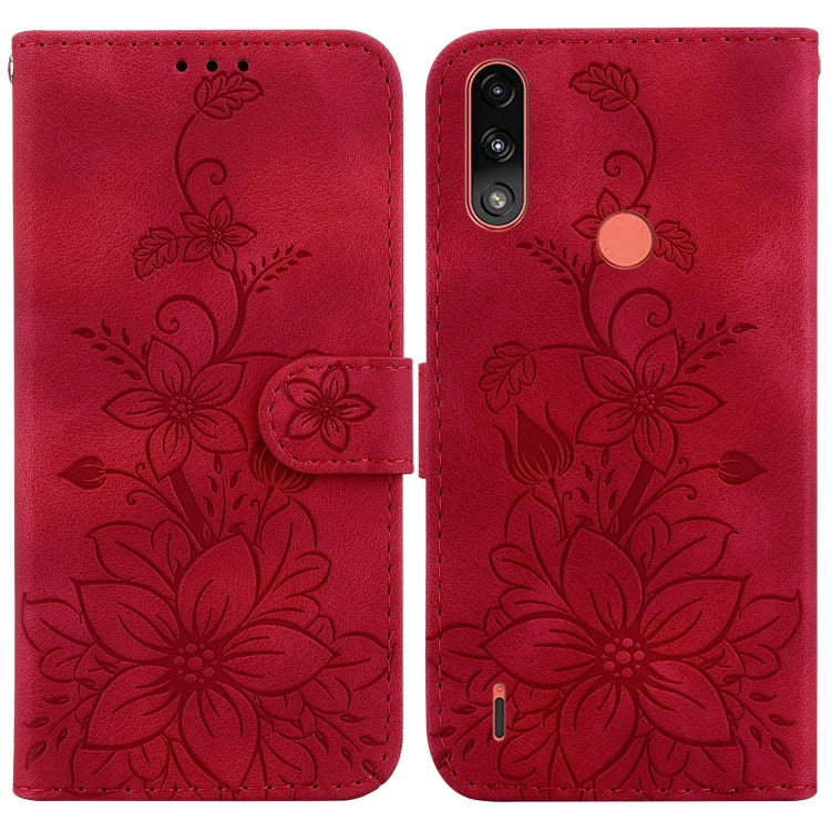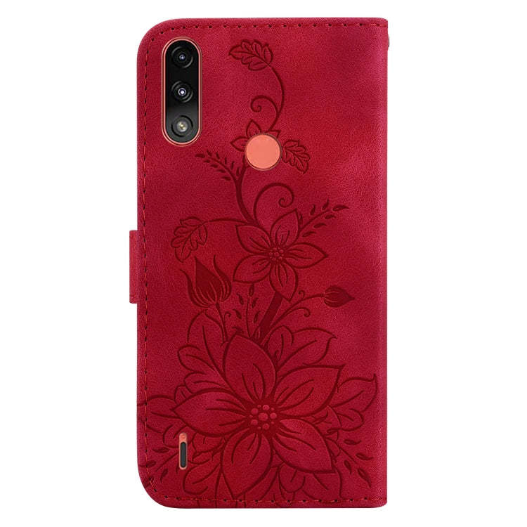 Funda para Motorola Moto E7 Power y E7I Power Lily en Cuero En Relieve (Rojo)