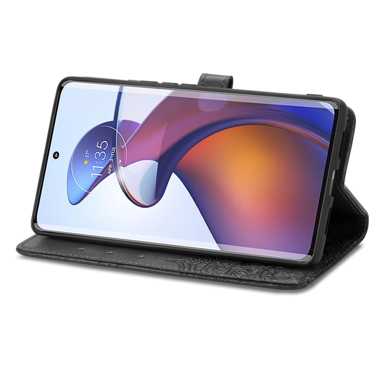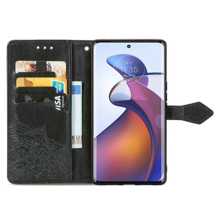 Funda de Cuero en Relieve Mandala Flower para Motorola Moto Edge 30 Fusion (Negro)