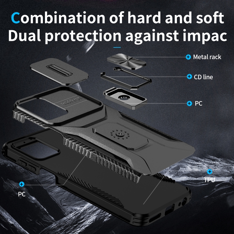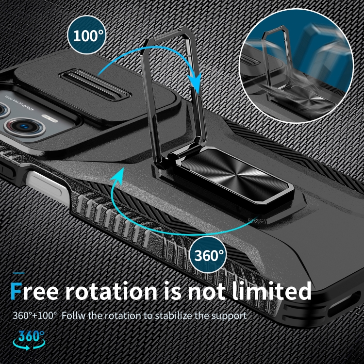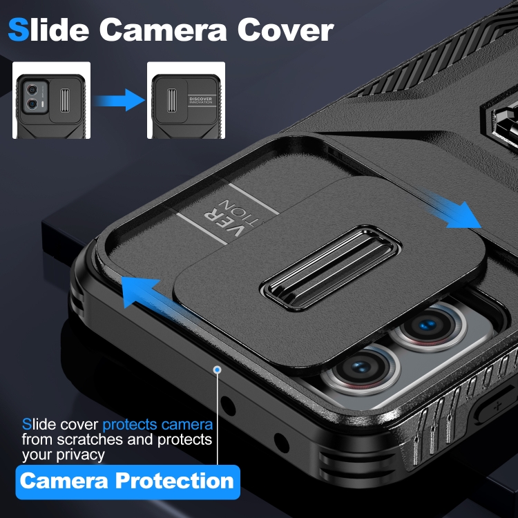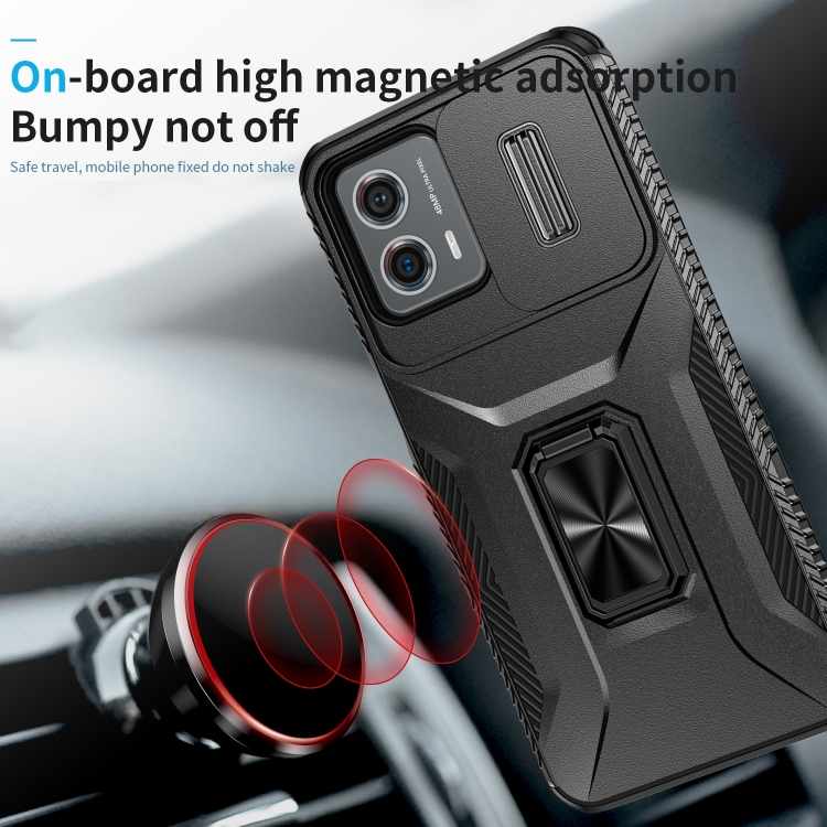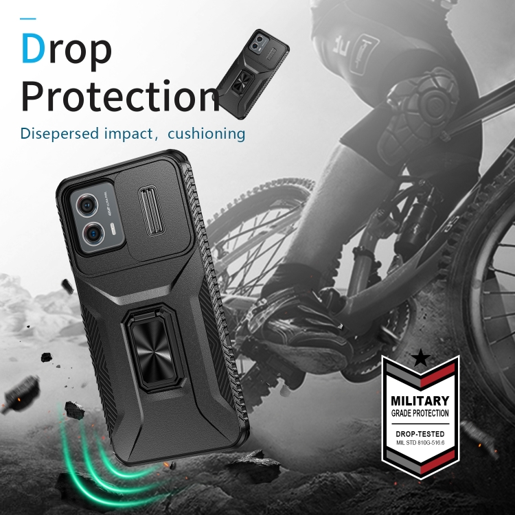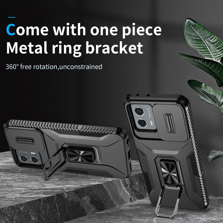 Funda para Motorola Moto G 5G 2023 y 4G 2023 con Soporte Deslizante para Escudo de Levas (Negro)