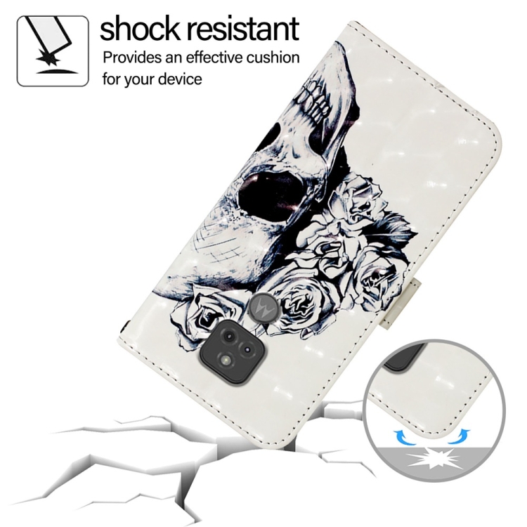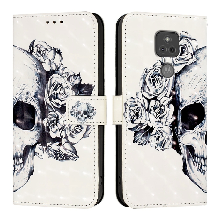 Funda para Motorola Moto G Play 2021 de Cuero con Tapa Horizontal y Pintura 3D (Calavera)