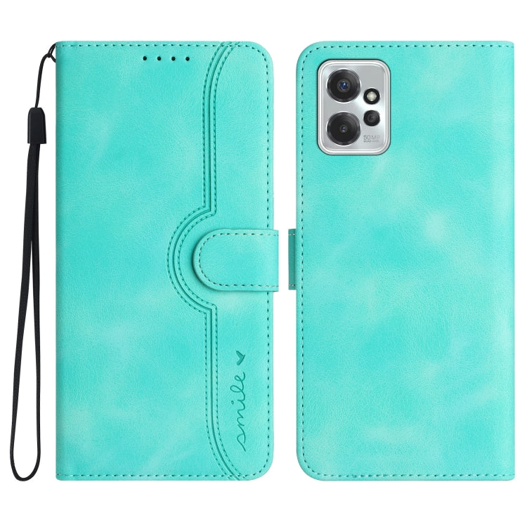 Funda de Cuero para Motorola Moto G Power 2023 con Sensación de Piel y Patrón de Corazón (Azul Claro)