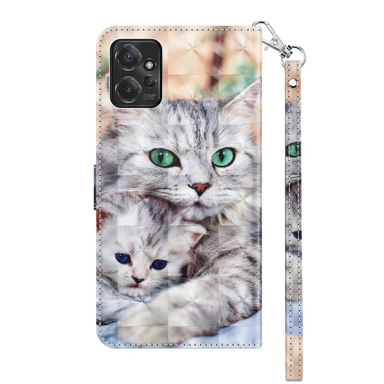 Funda de Cuero para Motorola Moto G Power 2023 Pintada en 3D Dos Gatos Amorosos
