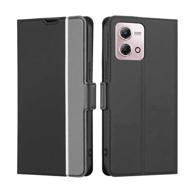Funda de Cuero Motorola Moto G Stylus 4G 2023 con Botón Lateral y Textura de Sarga (Negro)