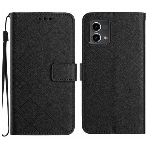 - 1x Funda de Cuero para Motorola Moto G Stylus 5G (2023) con Textura de Rejilla Rómbica (Negro)