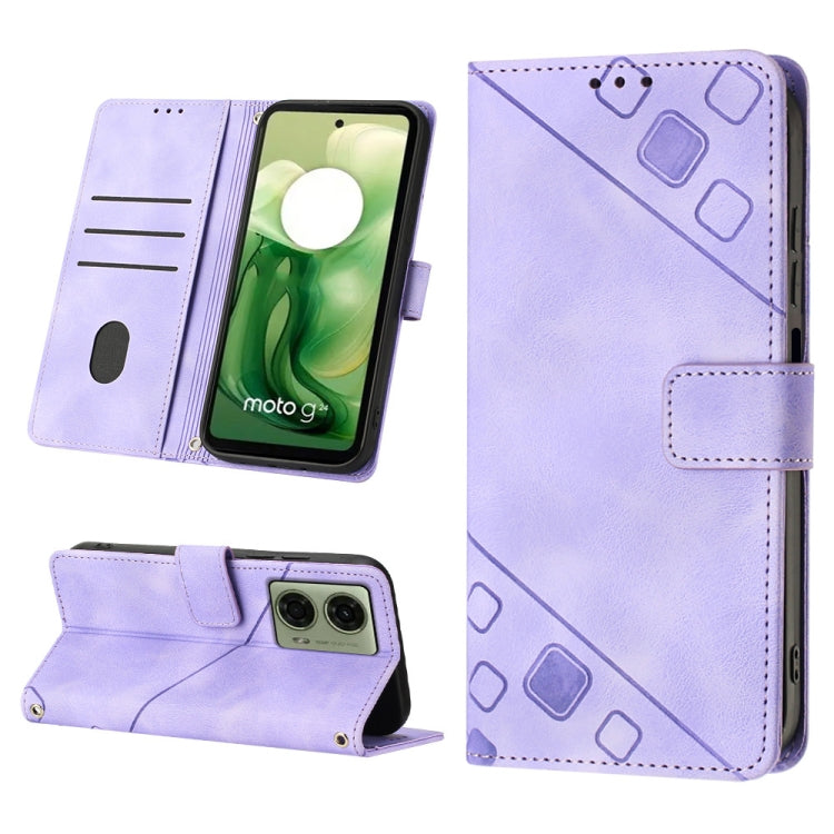 Funda para Motorola Moto G04 4G y G24 4G de Cuero en Relieve con Sensación de Piel (Púrpura Claro)