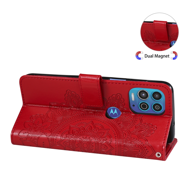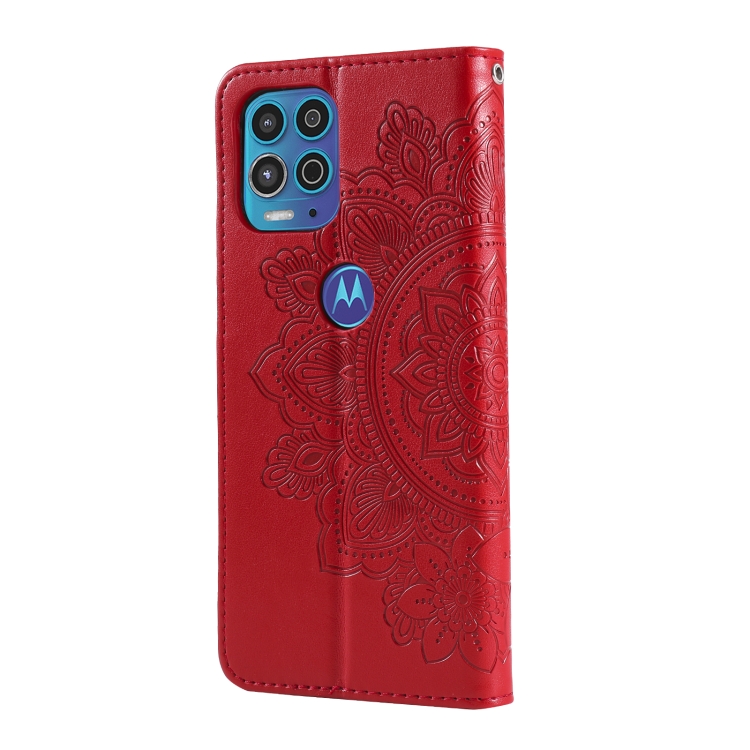 Para Motorola Moto G100 / EDGE S 7-Pétalo Flowers Patrón de estampado de estampado de PU Horizontal Funda de cuero con soporte y ranuras para tarjetas y marco de fotos (rojo)