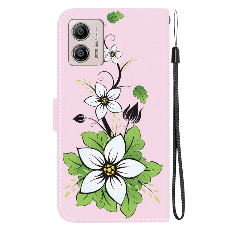 Funda de Cuero para Motorola Moto G13 / G23 / G53 con Dibujo Coloreado y Textura de Cristal (Lirio)