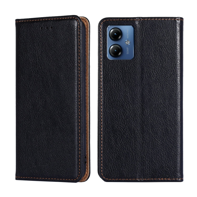 Estuche para Motorola Moto G14 4G de Cuero Magnético Color Sólido con Aceite Brillante (Negro)