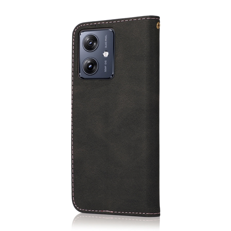Funda de Cuero para Motorola Moto G14 4G con Costuras Dos Colores (Oro Rosa Negro)