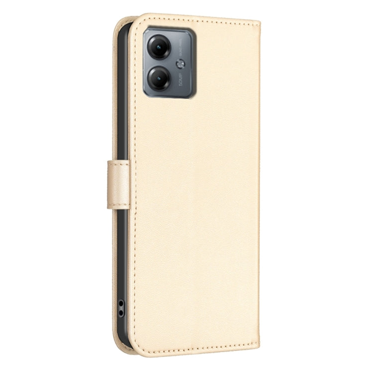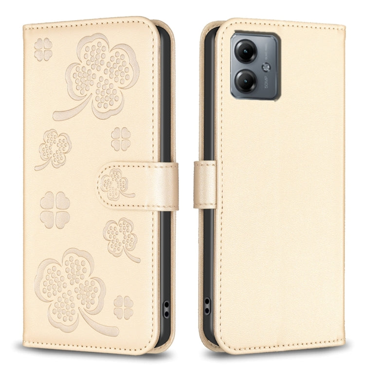 Funda de Cuero para Motorola Moto G14 4G con Relieve de Cuatro Hojas (Dorado)