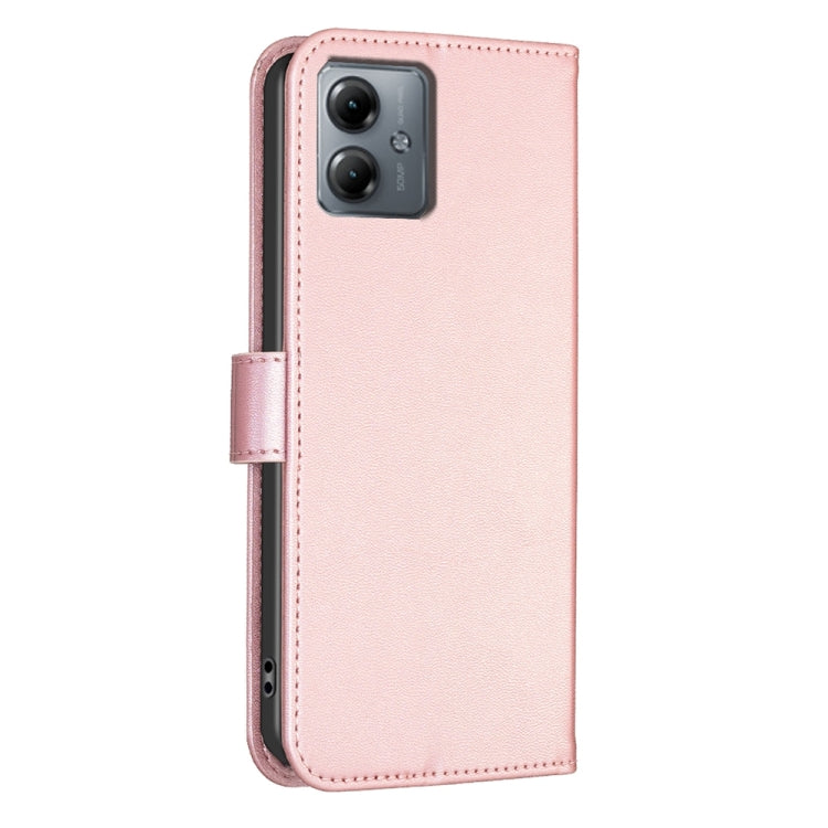 Funda de Cuero para Motorola Moto G14 4G con Relieve de Cuatro Hojas (Rosa)