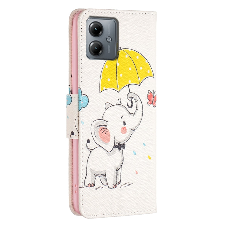 Funda de Cuero para Motorola Moto G14 4G con Patrón de Dibujo Coloreado (Elefante)