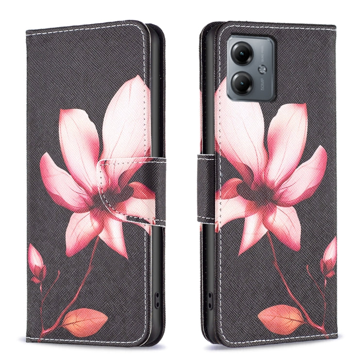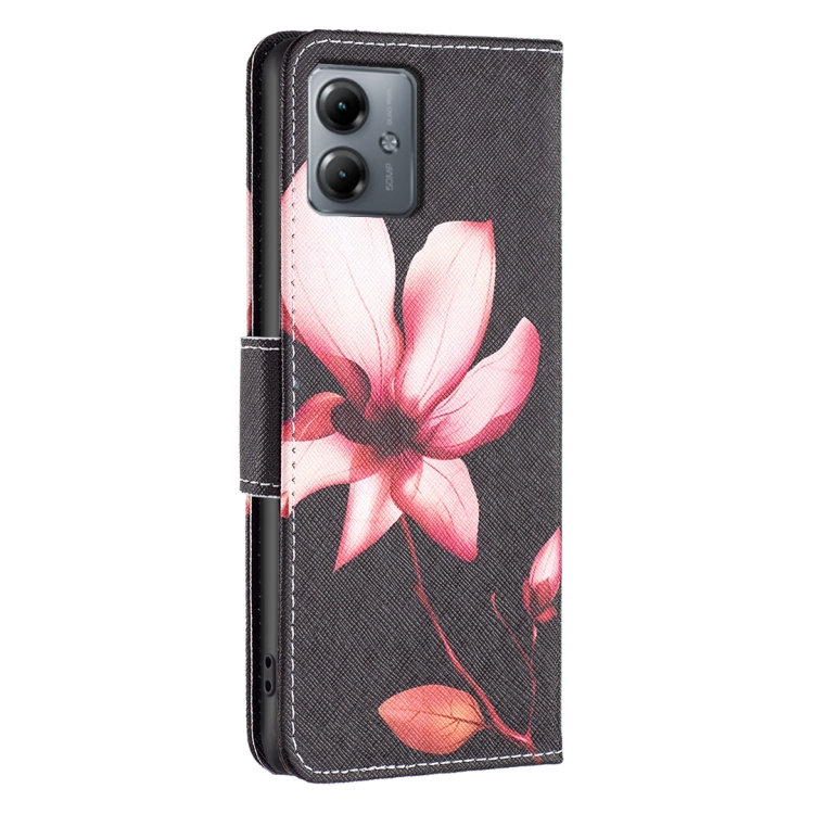 Funda de Cuero para Motorola Moto G14 4G con Patrón de Dibujo Coloreado (Lotus)