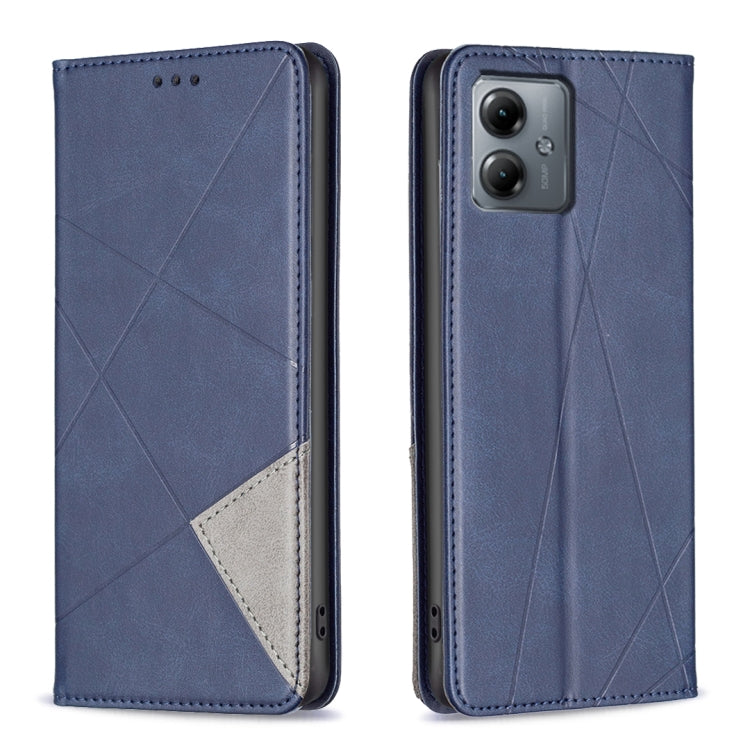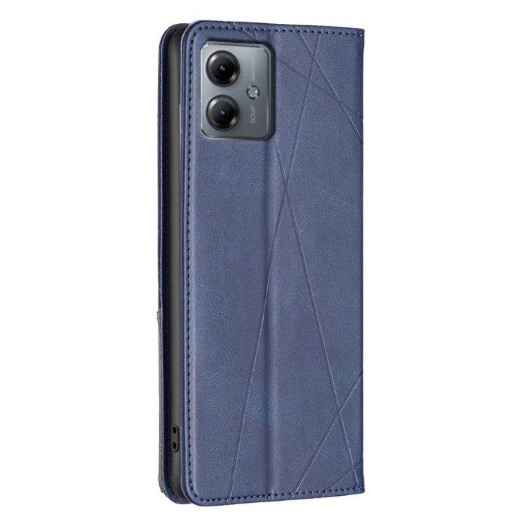 Funda de Cuero Magnético para Motorola Moto G14 4G con Textura de Rombo (Azul)