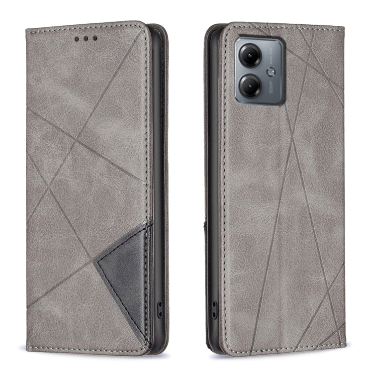Funda de Cuero Magnético para Motorola Moto G14 4G con Textura de Rombo (Gris)