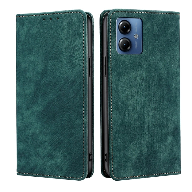 Funda para Motorola Moto G14 4G Rfid de Cuero Magnético con Cepillo Antirrobo (Verde)