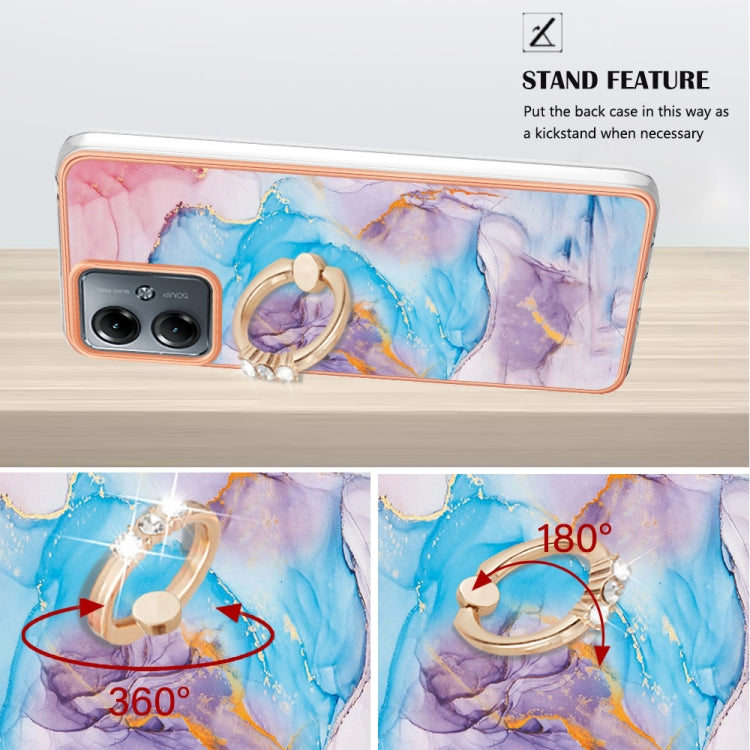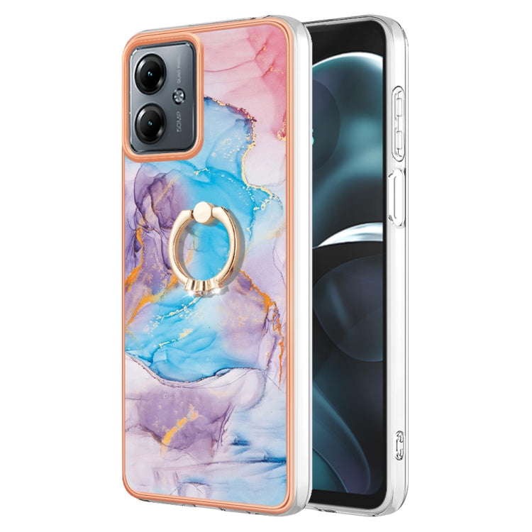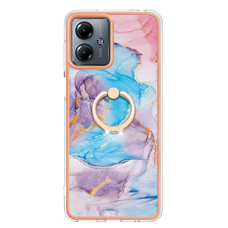 Funda para Motorola Moto G14 Imd TPU con Galvanoplastia y Anillo (Mármol Azul)