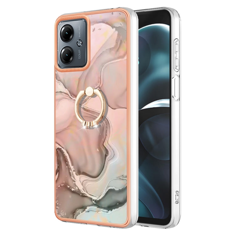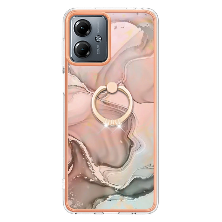 Estuche para Motorola Moto G14 Imd Doble Cara Mármol Galvanizado con Anillo (Oro Rosa)