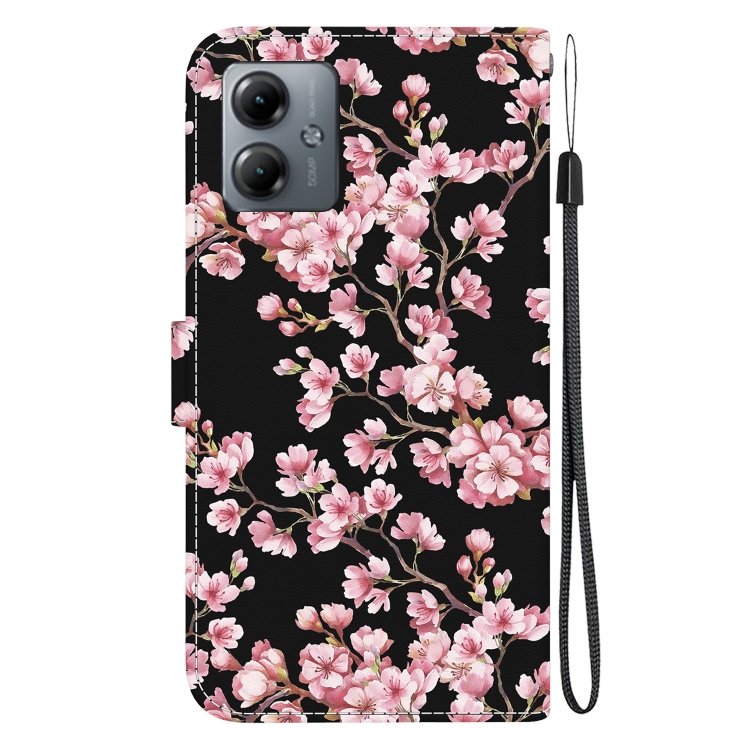 Funda de Cuero para Motorola Moto G14 con Dibujo Coloreado y Textura de Cristal (Flor de Ciruelo)