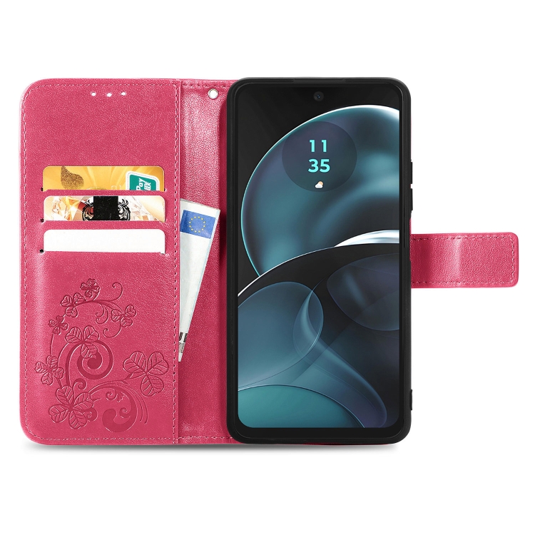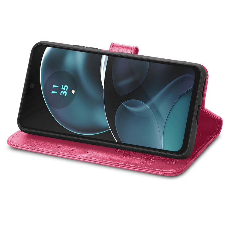 Funda de Cuero Repujado para Motorola Moto G14 con Cierre de Cuatro Hojas (Magenta)