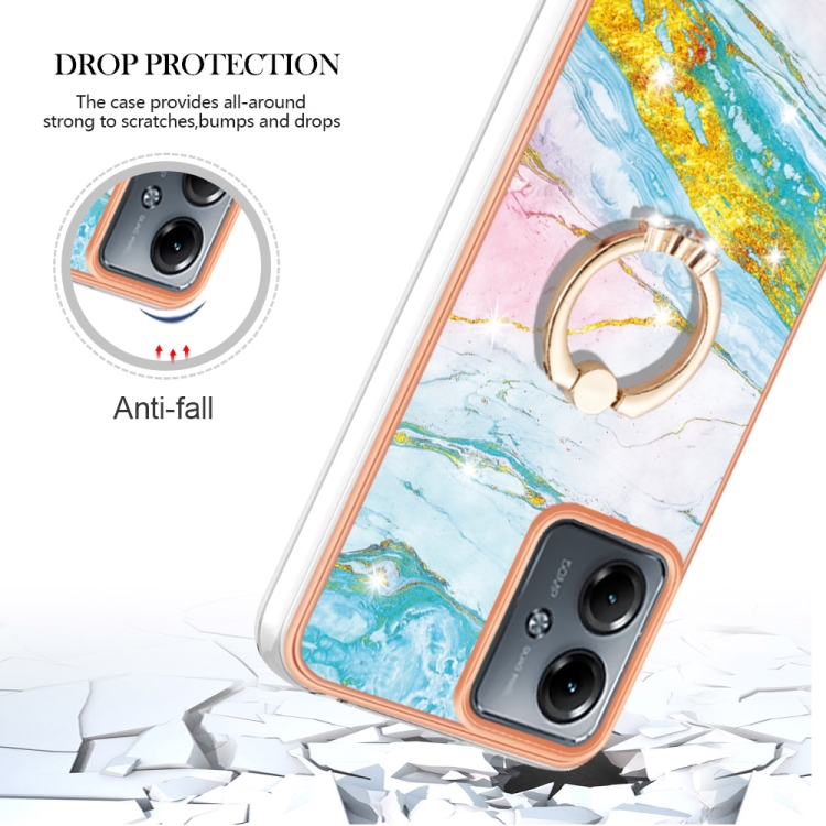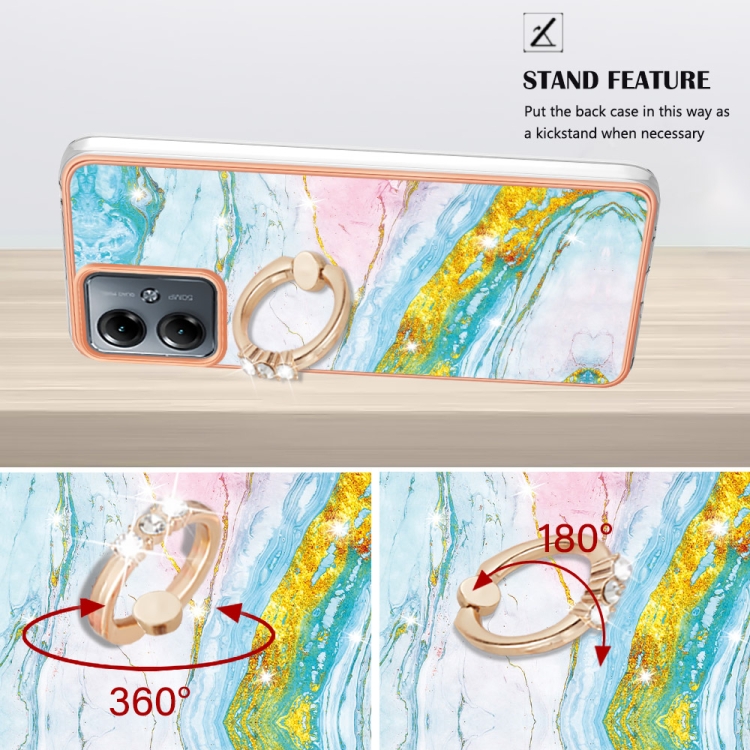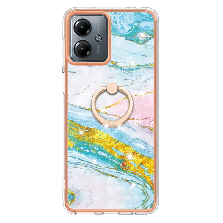 Funda para Motorola Moto G14 Galvanoplastia Mármol Imd TPU con Soporte para Anillo (Verde)