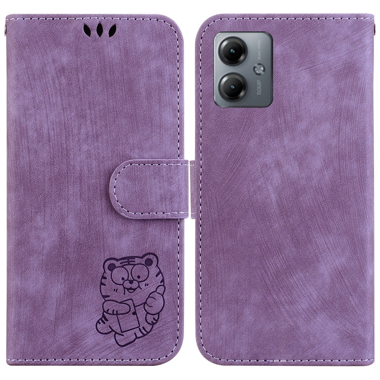 Funda de Cuero para Motorola Moto G14 Little Tiger con Relieve (Púrpura)