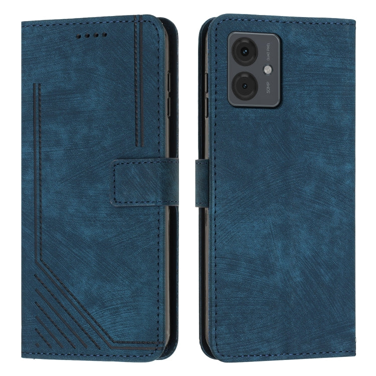 Funda de Cuero para Motorola Moto G14 Skin Feel con Patrón de Rayas y Cordón (Azul)
