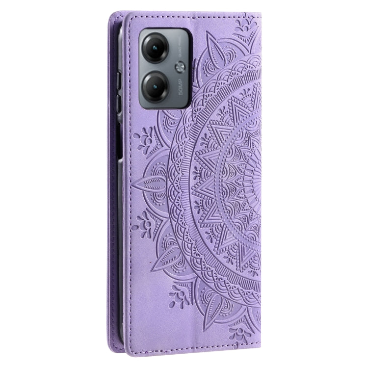 Funda de Cuero Magnética Totem para Motorola Moto G14 en Relieve (Púrpura)