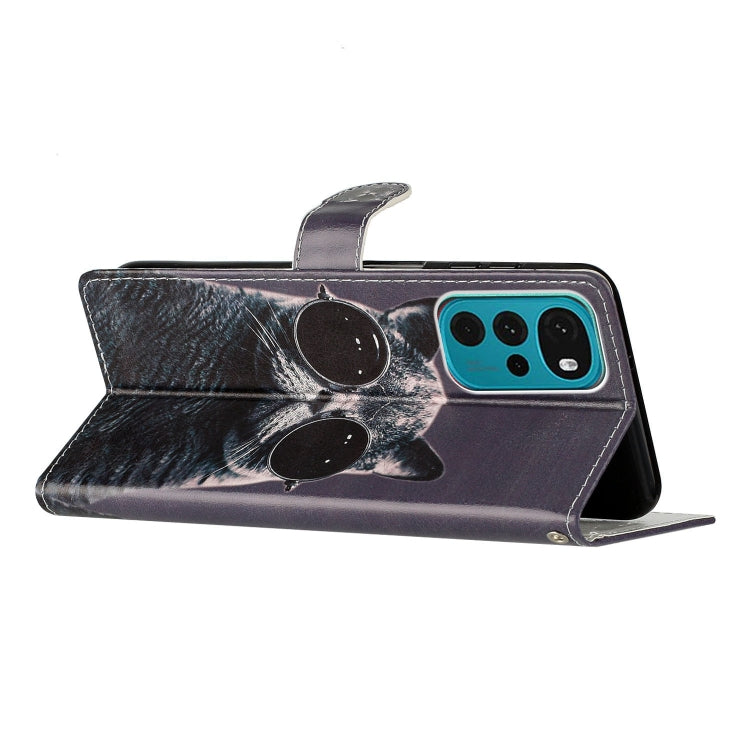 - 1x Estuche de Cuero para Motorola Moto G22 con Dibujo Coloreado Gafas de Sol Cat
