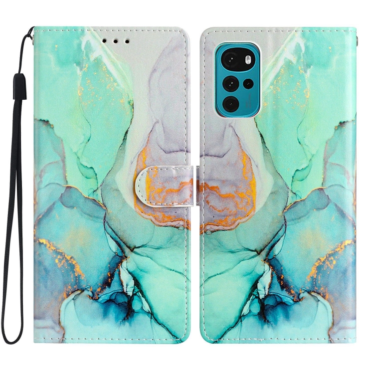 - 1x Estuche para Motorola Moto G22 de cuero con dibujo coloreado (Mármol Verde)