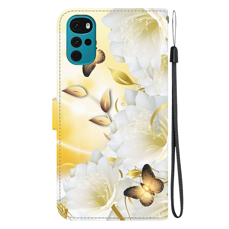 Funda de Cuero para Motorola Moto G22 con Dibujo Epiphyllum de Mariposa Dorada y Textura de Cristal